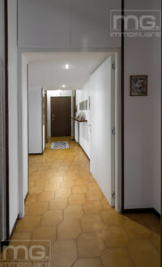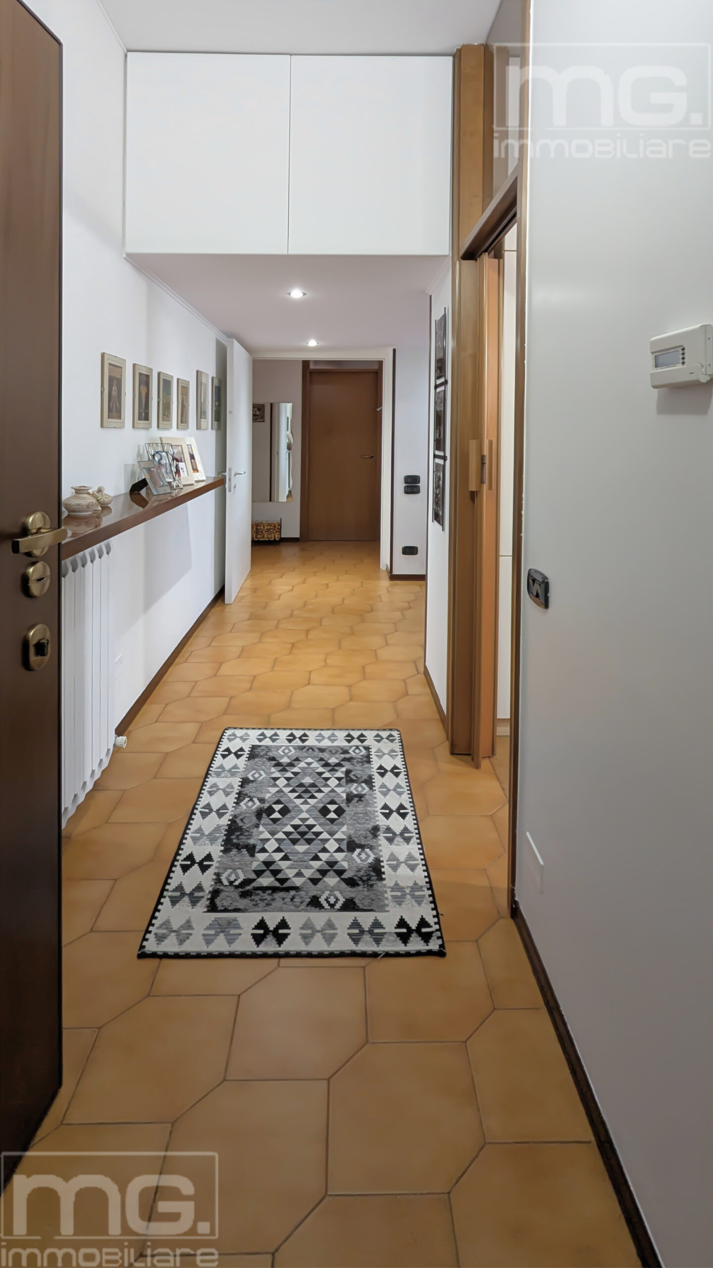 L'appartamento in questione ha accesso da porta blindata, con un corridoio centrale che porta in tutte le stanze dell'appartamento, dove è stato ricavato anche una piccola dispensa, molto utile come ripostiglio multiuso.