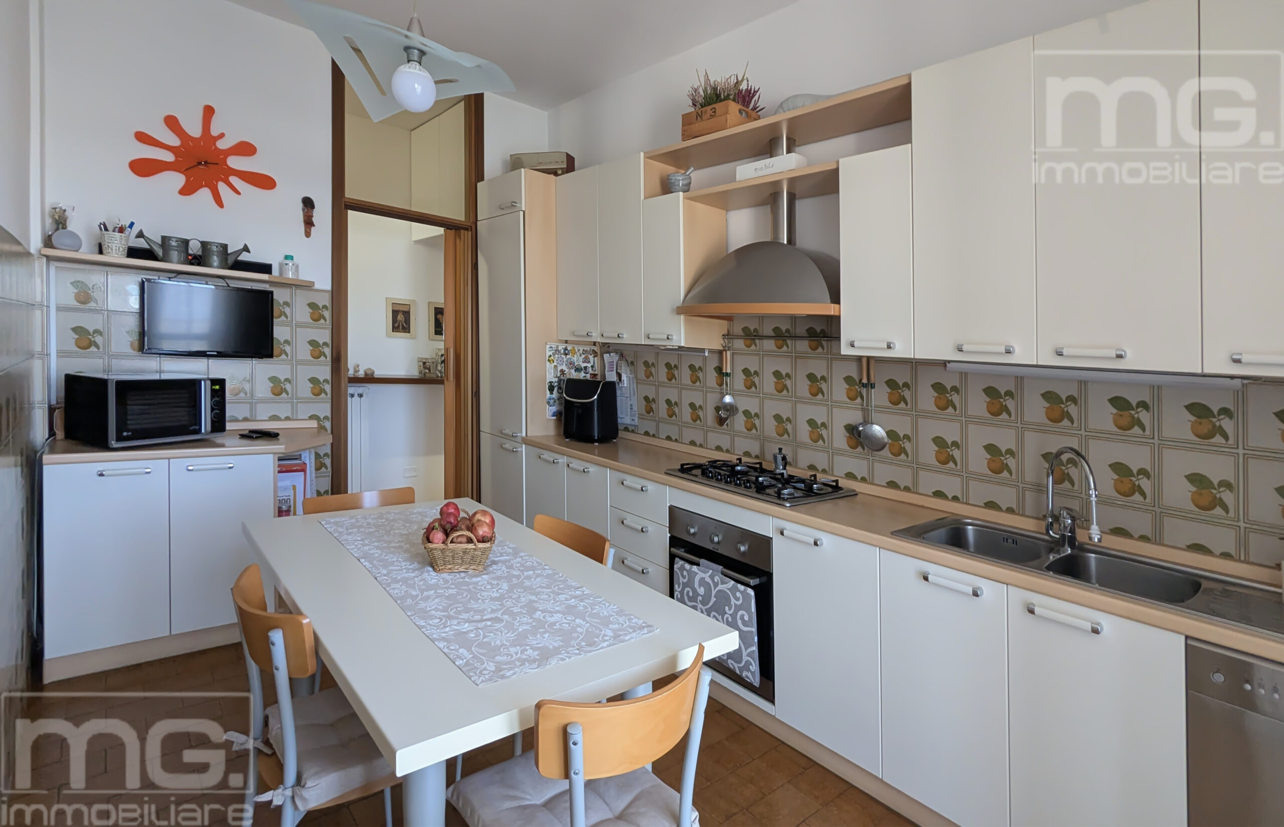 Quindi abbiamo la cucina abitabile molto luminosa con sfogo esterno su balcone.