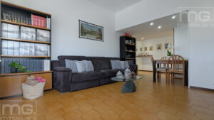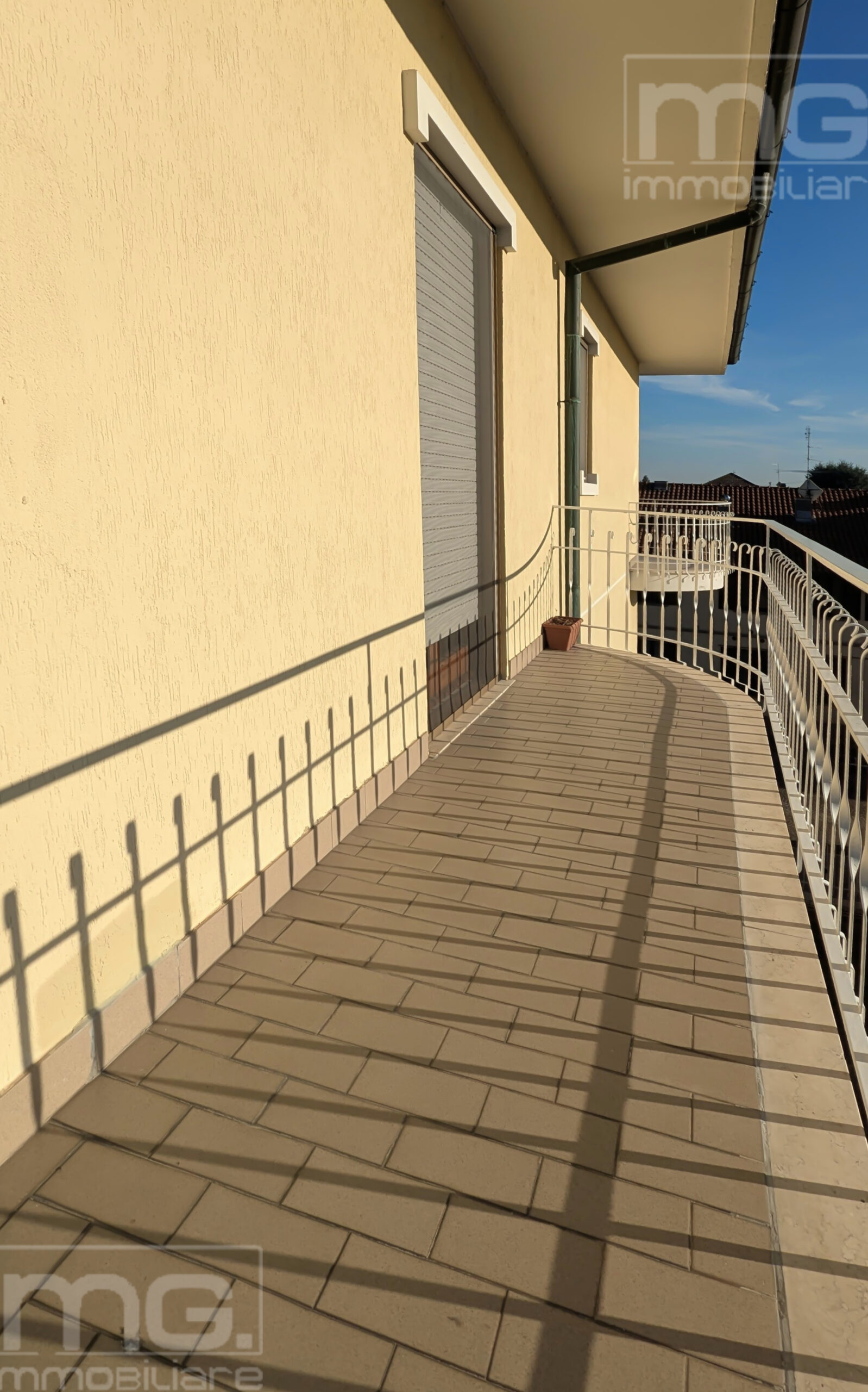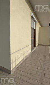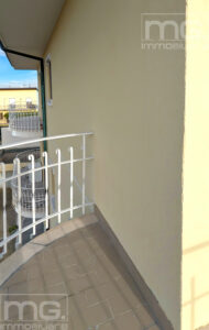 Proseguendo troviamo la ampia sala, anch'essa finestrata con uscita su secondo e ampio balcone, il bagno con doccia/vasca da bagno, dove è già presente l'attacco per la lavatrice, e le due camere da letto, entrambe con balcone privato.